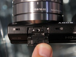 そのほか、ガイドナンバー6のポップアップ式フラッシュも内蔵した。なおアクセサリーシューは「オートロックアクセサリーシュー」で、これまでのNEX-5/3のシューとは異なる。Aマウントカメラ用のフラッシュやライト、モニター、マイクなどを活用することができる。さらに、シンクロターミナルアダプター「FA-ST1AM」も使用可能で、大型ストロボを使った撮影も行える。