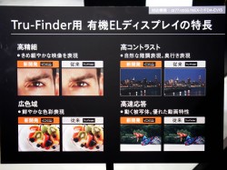 電子ビューファインダーをNEXシリーズとして初めて内蔵し、XGAの有機ELファインダー“XGA OLED Tru-Finder”を本体背面の左上に搭載。視野率は約100%で、視野角は33度。また3.0型のワイド液晶ディスプレイ“TruBlack”も備え、チルトにも対応している。液晶ディスプレイはタッチ操作には対応していない。