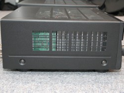 RX-A1010は、従来モデル「RX-V1067」の内部基板を踏襲しつつ、7ch シンメトリープラットフォームを採用した構造の7.2ch AVアンプ。シャーシもx067シリーズ同様に側面を解放した設計としており、筐体は上述の2機種より一回り小さい。定格出力は110W×7ch。