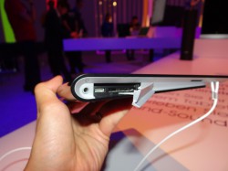 本体背面にはSシリーズ同様、有効画素数約511万画素の“Exmor R for mobile”HDカメラを搭載。フロントにも設けられたカメラでビデオ通話も可能だ。また本機もヘッドホン出力やmicroUSB、SDカードスロット、内蔵スピーカーを設けている。