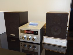 「C-717DV」はコンパクトなDVD搭載コンポ。省スペース設置が可能なよう、本体サイズ自体がコンパクトに仕上げられているほか、本体フロントパネルのドアがタテにスライドし、DVDドライブが現れるデザインとなっている。本体にはiPhone/iPodドックが付属する。また、フロントパネルの下側にはSDカードスロットやUSB端子も備えており、それぞれに保存した音楽ファイルの再生も楽しめる。