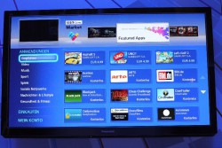 VIERAを紹介しているスペースの中でも、大きな面積が割かれていたのは「VIERA Connect」コーナーだ。テレビのGUIから「VIERA Market」にアクセスし、アプリを購入するとテレビのメニューに追加される。ちょうどスマートフォンと同じような操作でアプリをインストールできる。