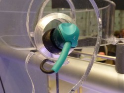 年初に米ラスベガスで開催されたCESで発表され、大きな注目を集めたノイズキャンセリングヘッドホン「CXC 700」をはじめ、多くの新製品が軒を連ねたゼンハイザーブース。