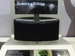 携帯端末向けの周辺機器関連メーカーが軒を連ねる「iZONE」に居を構えたB&W。iZONEへの出展ということもあり、大型スピーカーなどの展示は行わず、携帯端末やPCとの組み合わせを想定した製品が中心のブース展開となった。