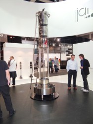 その名は「AeroDream One」。総合出力10,000Wのパワーを備えた360度無指向性スピーカー。本体の最上部にiPadドックが搭載されているが、iPadをセットするためには当然、ハシゴを使わなければならない。オーディオメーカーが数多く出展する「ホール 1.2」の中でもひときわインパクトが大きい製品だ。同社の展示スタッフによれば「近く商品として販売したい」というが、屋根の高いヨーロッパの一般家庭なら、これが置ける家もあるはず!?