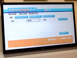 <ブラビア>おでかけガイド by PetaMapは、ソニーが提供する位置情報サービス「PetaMap」を利用したサービスで、約100万件の豊富なスポット情報をブラビアの画面で楽しめる。