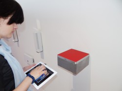 これらのほかにも、“デザインのレーベ”を来場者に強烈にアピールするため、3つのデザインスタディも用意した。「Mirror」は本体を鏡面仕上げにしたスレート型TV。「Module」はテレビ番組などの映像を片方のディスプレイに映しながら、もう一面のディスプレイにTwitterのフィードなどネットの情報を表示し、マルチコンテンツを楽しむことを提案するスタディモデル。「Pivot」ではシネスコサイズの液晶モニターを縦型・横型の表示に切り替え、それぞれの画面レイアウトにフィットしたコンテンツを流せるインフォメーションモニターのような使い方を提案していた。