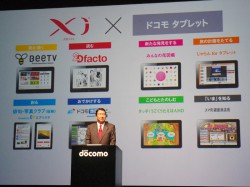 さらに、年末までにXi対応スマホを4機種提供することも発表。山田氏は「コンテンツプロバイダー各社と共に魅力的なコンテンツを取りそろえていく。ドコモのタブレットがあれば、動画や迫力のゲームを楽しめる。ぜひ一家に一台置いてほしい」とし、「Xiとタブレットが出会うことによって新たに生まれる魅力を多くの人に体験してほしい」と語った。