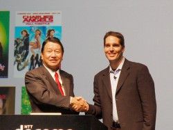 続いて壇上には、山田氏の紹介を受けてHuluのCEO ジェイソン・カイラー氏が登場。サービスの概要と、今回の日本展開に際してドコモと提携を結んだことについて説明した。