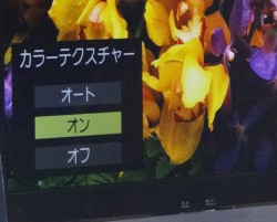「カラーテクスチャー復元」では映像の彩度に応じて輝度の高域成分を強調、または加算するアルゴリズムを加え、高彩度画像のテクスチャーを復元する。これにより、濃い色の映像についても、細部の質感をより鮮明に再現できるようになり、カメラで捉えた被写体の「元の色」を正確に復元した映像描写が可能になった。なお、カラーテクスチャーの復元効果は、映像メニューから「オート」「オン」「オフ」が選択でき、カスタマイズはRGBの3色ごとに0〜10段階で任意に調整できる。
