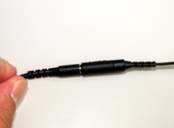 通常モデルのケーブル長は0.6mで、0.9mの延長ケーブルが付属する。延長ケーブルのコネクタはL字型。ケーブルを首の裏側に取り回せるようケーブルタイプはネックチェーン型を採用した。イヤホン部分のケーブルは着脱できない。