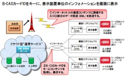 なお、デジタルサイネージシステムなどの高価な専用システムは不要で、地デジ対応テレビとインターネット回線があれば利用可能。また、B-CASカードの固有IDがコンテンツを識別するので、テレビごとに表示させる情報の内容を変えることもできる。さらに災害発生時には、テレビ放送を通じて緊急速報や災害状況を確認することもできる。
