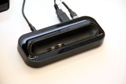 別売りのクレードル「HDステーション」を用意。HDステーションはUSB端子3系統、HDMI出力1系統を装備しており、USBキーボードやマウス、PC用スピーカーなどを複数接続できるほか、ディスプレイへの画面出力もHDMIで行える。