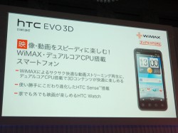 「HTC EVO 3D」については「実機を使ってみて一番気に入ったのはHTC Watch機能」と述べ、HDMI接続でテレビにも映像を映せる出力できることにも触れ「イケてる端末」とコメントした。モトローラ製の「MOTOROLA PHOTON」についても、「私は写真を通した楽しみ方がSNSにはあると思っていて、ウィジェットでSNSの写真機能も楽しめる“MOTOBLUR”が特に気に入った」という。