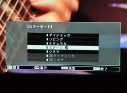 2D映像の表示時には09年モデルの「EH-TW4500」から搭載された超解像技術(関連ニュース)やフレーム補間が使用できる。色域についても「Newエプソン シネマフィルタ」を備え、NTSC比117%という広い色再現領域を実現している。2Dの映像モードにはライブ系の映像鑑賞に最適化された「ステージ」が新設されたほか、ダイナミック/リビング/ナチュラル/シネマが用意されている。