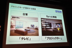 久保田氏は「今回エプソンが発表した5つのプロジェクター新製品を貫くコンセプトは、ちょっと特別なわくわく感や大画面/高画質・高音質という、プロジェクターならではの価値を推し進めながら、手軽な使い勝手や、お求め安い価格設定であることもアピールしていきたい」という。