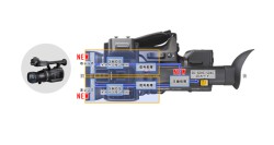 音声記録は本体に5.1chマイクを搭載し、5.1chドルビーデジタル記録が可能。高品位なリニアPCM記録にも対応する。グリップ部には2系統のXLR端子も設けており、好みのマイクで音声記録ができる。レベルメーターも細かく設けられた。