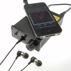 外形寸法75W×30H×98Dmm、質量約220gのコンパクトな筐体には、剛性の高いアルミを採用した。周波数特性は5Hz〜200kHzで、最大出力レベルは300mW。入出力端子は、共に3.5mmステレオミニを備えている。電源はACアダプター。