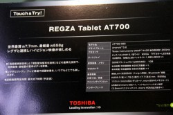 なお、タッチパネル付き7型液晶搭載の“REGZA Tablet”「AT3S0/35D」も併せて発表された。本機は10月下旬から販売が予定されており、価格はオープンだが5万円前後での販売が予想される。