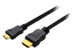 コネクタ形状はHDMIプラグ(タイプA-19ピン)−HDMIミニプラグ(タイプC-19 ピン)で、信号劣化しにくい金メッキプラグを採用。「HIGH SPEED with Ethernet」に準拠する。外部からのノイズ侵入を防ぐ3重シールド構造を採用している。ケーブル長は1.5m。