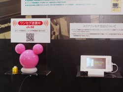 また、「電波をとおして生活を豊かにする製品」と題し、留守宅内に不審者が入った際などに異常を音声で知らせてくれるホームセキュリティー機器「見張っチャオ!」なども紹介。アナログカーテレビ用ワンセグセットや、UHFブースターのほか、エリアワンセグ受信のデモンストレーションも行われている。