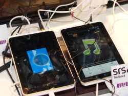 SRSは、iPhone/iPod/iPadの楽曲データを補正する専用アダプター「SRS iWOW 3D」をはじめとした数々の音響技術を出展。