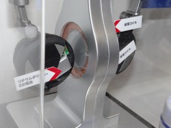 同社の展示説明員によれば磁場共鳴方式は、電磁誘導方式と比較して、ワイヤレス充電が可能なコイル間距離が広くとれるほか、位置ずれにも強いという特長を備えているという。今後は市場の要望をみながらBtoBでの製品化を検討していく考えであるという。