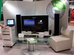 ブース内では(社)日本ケーブルラボ(JLabs)が対応STBによるケーブルテレビでのDLNA活用方法を提案するスペースも展開。外部のBDレコーダーなどと連携することで録画機能を持たないSTBを使用していても録画を行えるようにする構想などを紹介し、シャープのBDレコーダーやアイ・オー・データ機器「RECBOX」を特別仕様にした試作品を参考出品している。