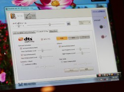 続いては、市販の液晶テレビにDTSサラウンドのバーチャライザーを搭載したプロタイプによる視聴再生デモが行われた。今回は「DTS Ultra PC IIPlus」に搭載されている「DTS Surround Sensation」をベースにしたアルゴリズムの設定値を、特別テレビ用にパラメーター調整したセットが使われた。
