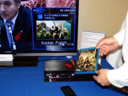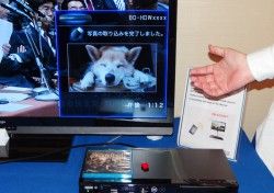 会場ではテレビに放送波の番組を表示しながら、小窓のサブ画面にBDレコーダーのHDDに録画した未視聴番組の動画付きサムネールを表示したり、BDディスクのジャケ写情報やタイトルテキストを表示するデモが行われた。デジタルカメラをレコーダーにUSB接続すれば、メモリー内の写真データをプレビュー表示すること可能になるという。