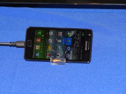 会場ではサムスンのスマートフォン「GALAXY S II」に保存した1080p動画を、スマートフォン側でデコードしながらMHL/HDMIケーブル経由でテレビに表示するデモが行われていた。テレビとの接続時にはスマートフォンの電源をチャージすることもできる。またテレビのリモコンでスマートフォンをコントロールすることも可能だ。同社では「テレビにネット接続機能がない場合でも、MHLに対応してさえいれば、スマートフォンでYouTube再生やWebブラウジングしながら大画面テレビで楽しむことができるようになる」と、本技術のメリットの一例を紹介している。