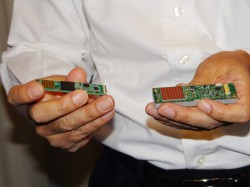 同社では現在“Gen2(第2世代)”のチップを量産出荷中だが、会場にはいま開発中の“Gen3(第3世代)”のチップも用意。次世代のチップでは約1/2の省電力化が実現できるほか、チップサイズのコンパクト化やコストダウンも可能になるという。