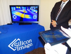 WirelessHDの技術については、米国でVIZIOが発売している4ポート搭載のトランスミッターを展示し、60GHz帯のワイヤレスAV伝送技術の実力を披露。同技術のチップを組み込んだタブレットの試作機による、タブレットと大画面テレビでの“2画面ゲーミング”のデモも用意して、ワイヤレス環境での低遅延性能もアピールした。