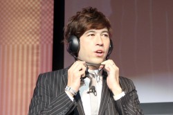 続いて同社広報宣伝課・中込直樹マネージャーが、今回発表したものを始めとした2011年新製品についてのコンセプトについてプレゼンテーション。発表会の司会を務めたサッシャさんとともに、オーディオテクニカ50年の歴史から生まれたユニークな製品たちも紹介された。