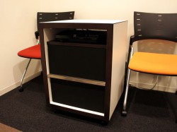 ソニーグループのなかの一級建築士事務所がプロデュースした製品で、ラックの色や柄を変更しての注文にも対応する。壁面に当社することを基本にし、ラックにはキャスターも付いているため、例えばツインベッドの間にナイトテーブル代わりに設置し、ベッドスタイルシアターとして利用するなどといったことができる。