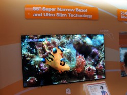 加えて、上部で3.73mm、左右が4.3mmという狭ベゼルかつ厚み12mmという薄さも実現した55インチディスプレイなども参考展示。そのほか、1080pや7.1ch音声をモバイル機器からテレビなどに伝送可能でHDCP対応の独自技術「MHL(Mbile High-Definition Link)」の紹介なども行っている。