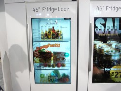 そのほか、ブースでは22インチの透過型液晶テレビや、透過型ディスプレイをドアに採用した冷蔵庫なども展示。スピーカー内蔵型の10.1インチ液晶パネルなども参考展示している。