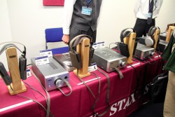 STAXでは、今春発売されたコンデンサー型ヘッドホンのフラグシップモデル「SR-009」を出展。同社に販売状況を尋ねたところ「絶好調」とのことで、ヘッドホンマニアからの高い支持を集めているという。