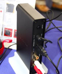 そのほかポーカロ・ラインのコーナーでは、μSHARのUSB-DAC「μDAC 111」や「μDAC 311」、ポータブルヘッドホンアンプ「μAMP 109G2」「μAMP 109G2+」など、すでに発売しているモデルも出展。109G2と109G2+では、最近バッテリーをリチウムポリマーに変更し、連続駆動再生時間が延びたことも紹介していた。