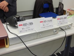 もう1つは“CD音源を完全な形で聴こう”をテーマとするもので、同社が開発中のジッター除去技術を「HD-7A192」に搭載した特別機を使用した技術展示。来場者が手持ちのCDで、同技術の効果を体験する姿もみられた。