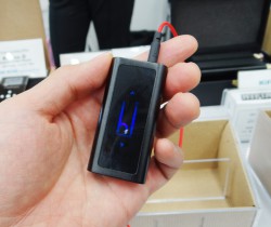 izo(アイジオ)は、このほど新ブランドとして展開する「izmo」のポータブルヘッドホンアンプなど試作機を展示した。