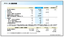 ソニーは、2011年度第2四半期(7月1日〜9月30日)の連結業績を発表。売上高及び営業収入は前年同期比9.6%減の1兆5,750億円、営業損益が前年同期の687億円の利益に対し当四半期は16億円の損失、四半期純利益では270億円の損失を計上した。
