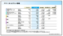 構造改革費用を除くベースで分野全体の損益変動にマイナスの影響を与えたカテゴリーは、原価及び費用削減よりも価格下落の影響が大きかった液晶テレビ、前述の理由で売上が減少したゲーム及びPCなど。なお、当四半期の営業損失には、S-LCDの低稼働率に起因する追加的な液晶パネル関連費用及び前述の液晶テレビ関連資産の減損86億円が含まれる。