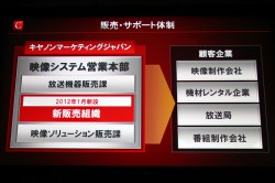 同社は「Cinema EOS」シリーズの投入に併せ、同シリーズの販売用組織を2012年1月に新設。システム提案やサポート活動を行っていくという。