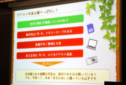 その上で荒木氏は、撮影した写真の整理が出来ていないと回答したユーザーが51.5%と半数以上に上り、その理由として最も多いのが「時間がない」という回答だったこと、また撮影した写真の保存もPCが多く、見ているのもPCの画面が圧倒的であることなどを紹介。「デジタル化によって、せっかく撮られた写真を見る機会が減ってしまっている」と述べ、「PCに保存されたまま眠っている写真を、家族で『見る』楽しみを引き出したい」と述べた。