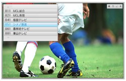通常のテレビ視聴画面。チャンネル選択パネルやコントロールバーはオンマウスしたときだけ表示する