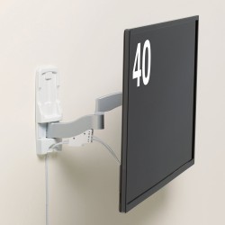 スイーベル式の壁掛け金具PDR-AR2020WHは、ディスプレイ部を上下左右に角度調節できることが特徴。上下方向に+17〜−15度、左右方向は40V型で±50度、32V型で±70度までの調整に対応する。本体寸法は厚み35mm。