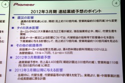 パイオニア(株)は29日、2012年度3月期の連結業績予想と、新・中期事業計画についての説明会を開催した。