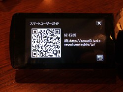 ユーザーサポート機能には新たに「スマートユーザーガイド」が採り入れられた。本機能ではカメラのモニター上にQRコードが表示され、スマートフォンで読み取るとWeb上に設置された“Everio”のサポートページに手軽にアクセスでき、カメラ操作のトラブルなどがすぐに参照できる。本機能はiPhone、Androidスマートフォンの両方に対応している。