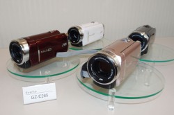 ラインナップは32GBメモリー内蔵の「GZ-E265」、8GBメモリー内蔵の「GZ-E225」と、本機の機能を簡略化した「GZ-E220」の3種類。価格はいずれもオープンだが、E265は7万円前後での販売が予想され、カラーバリエーションはピンクゴールド/ルージュレッド/シルキーホワイト/クリアブラックの4色展開。E225は45,000円前後での販売が見込まれ、フローラルバイオレッド/フレッシュレッド/アーバンブラウンの3色が揃う。E220は4万円前後での販売が予想され、プレシャスシルバーとルージュレッドの2色展開となる。